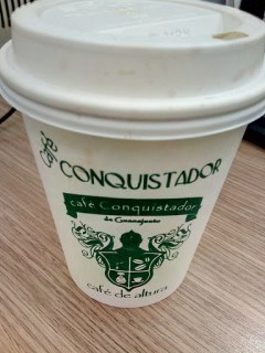 Caminaba rumbo al trabajo y hacía un poco de frío. Un penetrante olor a café me convenció de hacer una escala y comprar un capuchino en El Conquistador, una pequeña cafetería que parece una cuevita y que debido a su tamaño, la mayoría de la gente (como yo), lo pide para llevar.