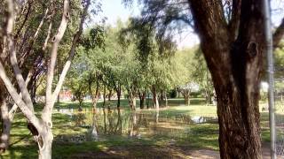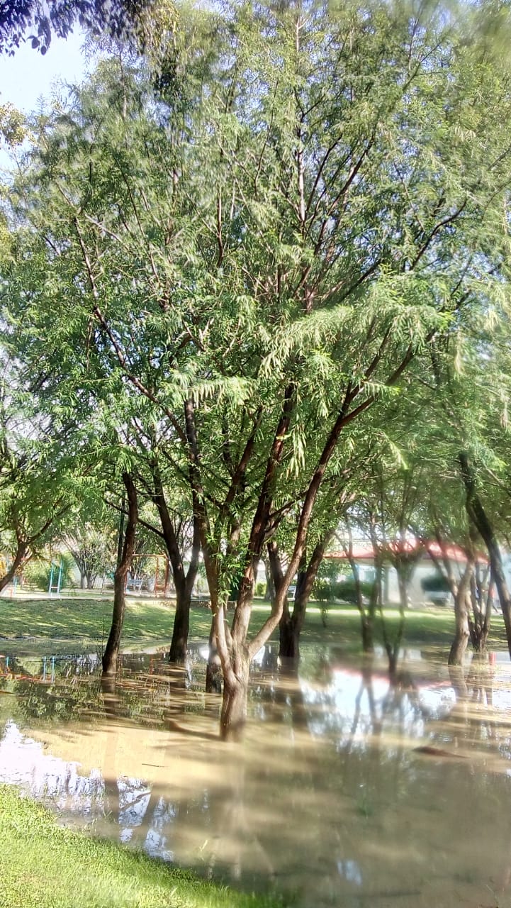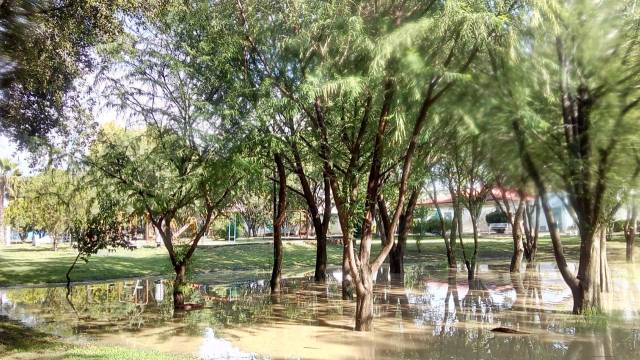 Caminé unos metros y encontré un grupo de ahuehuetes inundados. En contraste con la imagen anterior, su aspecto era rebosante, las hojas brillaban y parecían felices por el efecto de la misma agua que tumbó al otro.